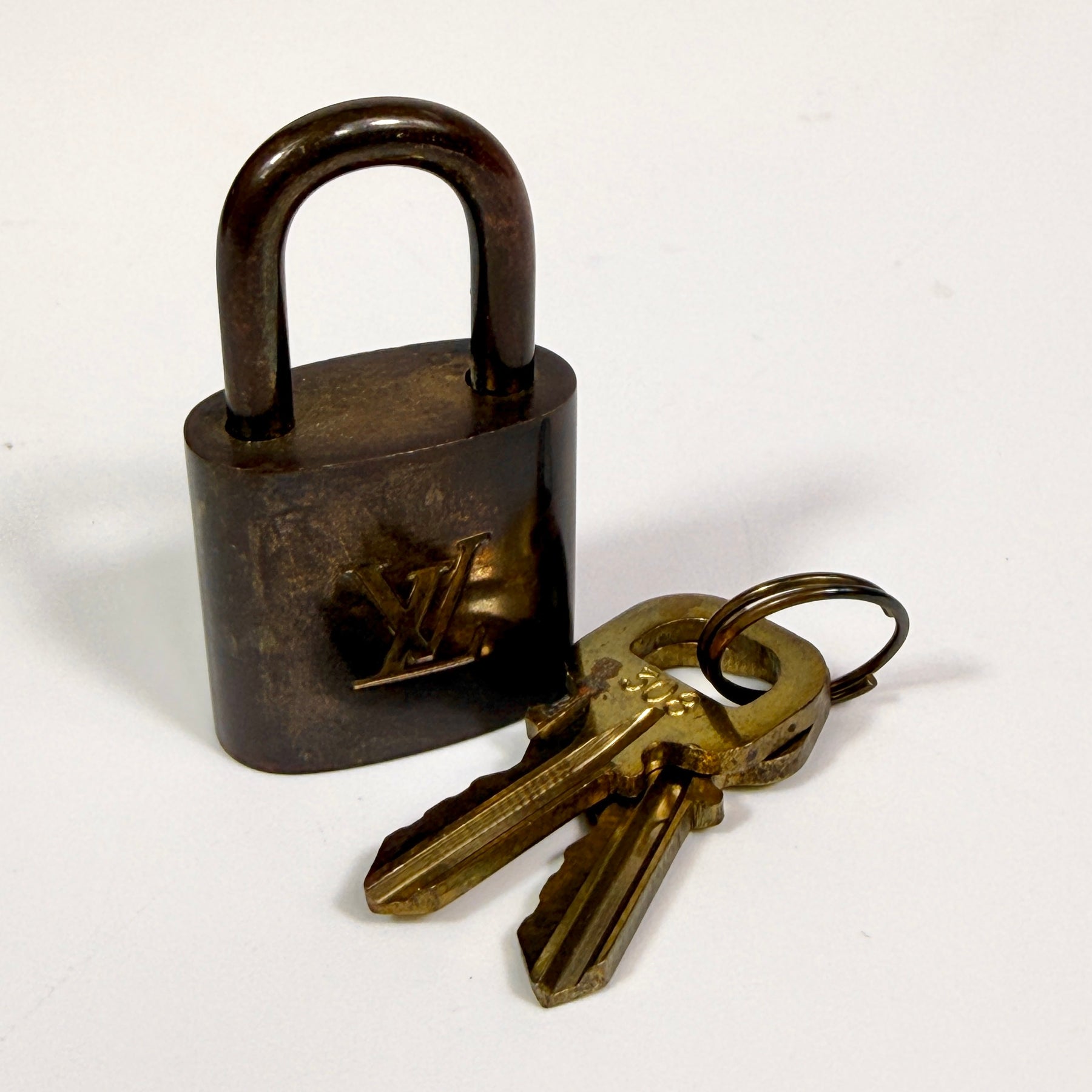 Flaws: Pen marks on interior, lock tarnishing, minor staining on dust bag, see photos.